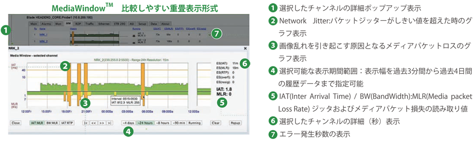 ・ MediaWindowTM IPストリーム品質解析グラフィック機能